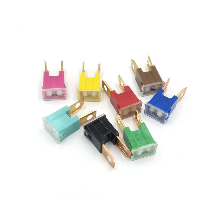 فیوز خودرو تیغهای دارای پوسته پلاستیکی با ترمینالهای فشاری است.